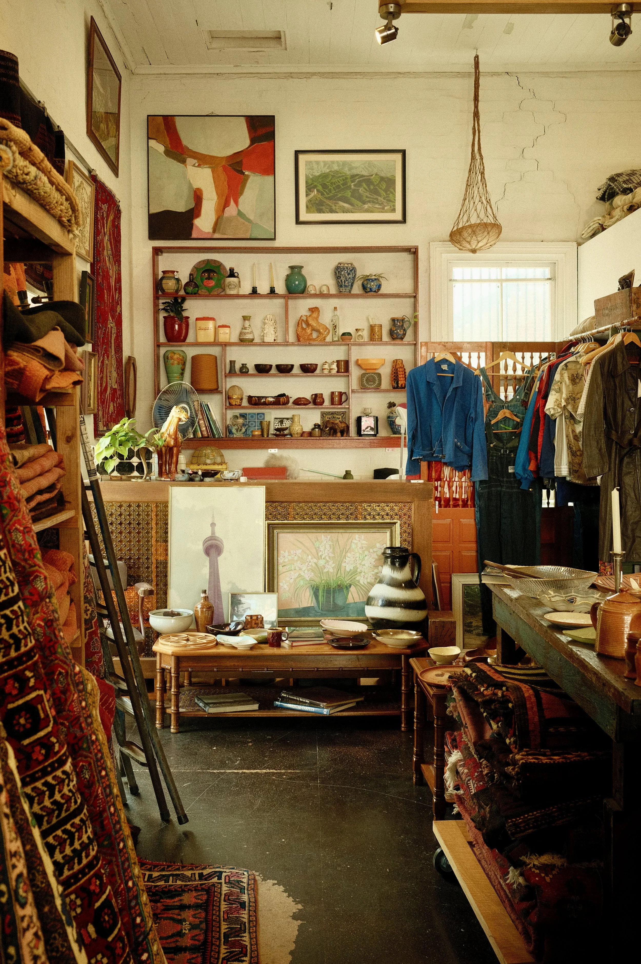 a curated space for hand made rugs, vintage clothes and homewares.